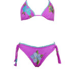 Triangle bikini in embroidered Lycra, tie-side bottoms, finished with ruffles.